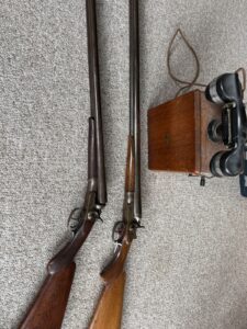 - Antiques/Collectibles & Items Around Farm(2) 12 ga. double barrel shotgun – early 1900’s * Ertl, J.D. toy tractors & related implements c. 1990 * Tailgating style propane gas grill * Dozen 7’ wolmanized posts * Box type camera collection – approx. 40 pieces * Glass jars & bottle collection (Saginaw, Bay City, etc.) * Wooden ice cream maker * Barn lanterns * Hand corn planters * Radio Flyer childs wagon * Speckled granite cookware * Masterbuilt S.S. electric smoker * Bissell turbo carpet cleaner * Kirby G5 Ultimate vac w/attachments * Monopnone wood wall phone * Mondoline & Harmony guitarPeggy Goodman – Proprietor