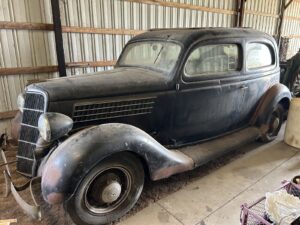 1935 Ford 2-Door Sedan, V-8 Engine, solid body, Continental kit & original tool kit, same owner 70 years. good potential.
