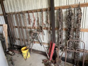 3pt. Hitch mounted wood chipper to 5” * Trailer type PTO driven compact 10KW generator * Agri-Fab * 9HP trailer type lawn/leaf collector * 50-ton trailer type log splitter * 500 gal. dsl. Fuel tank w/ Gas boy pump & meter * 250 gal. gas tank on stand * Clinton 8hp engine w/belt pulley * Custom electric 5 gal. feed grinder * Nice custom built chicken brooder 24 bird capacity * 6’x4’ steel enclosure * (50) 2”x6” 10’ long lumber * usable iron inc; angle, channel, tube, etc. * useable truck, trailer, & tractor rims & tires * Kawasaki 2” trash pump * Ohio 48” yard sweeper * (25) steel post* Barn door track & rollers *
