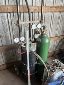 (2) portable torch sets w/tanks * 5’x2’x1/2” thick steel workbench w/ 6” vise * Century 220 amp. Port. battery charger * 50# anvil w/stand * Freestanding manual tire changer * Littleson 5” vise on steel sawhorse * compact port. hyd. Lift * (2) Lincoln 225 amp. Welders *