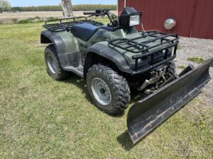 Honda Rancher 420 ES 4X4 ATV, W/plow & winch low miles * 1984 Suzuki 250CC quad runner looks/runs good * 1972 Honda 50 3 wheeler ATV **REMOVED* Stihl, Echo, & Husqvarna chainsaws * 14’ S/A implement trailer * Cycle mate CM2000 5’x4’ covered cycle trailer * Custom built electric meat grinder * Marlin .30-30 cal. Lever action rifle * Midland .270 cal. Bolt action rifle w/redfeild scope * Italian 6.5MM bolt action rifle * Sears 12 ga. Bolt action rifle* Iver Johnson 20 ga. Shotgun * Black powder rifles (4) unique BP handguns *12’ deer stand*