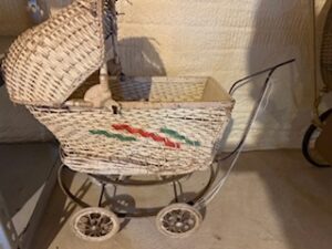 Vintage primative goat cart wagon * Edison Model D flat top cylinder player w/30″ horn * Northern Electric oak wall phone (complete) *(2) vintage wicker doll/baby buggies * American Boiler ornate mini cast iron woodstove * Vintage round & rectangular * oak dinning tables * oak medicine cabinet w/ mirror * Howard Miller 31- day wall clock * pressback rocking chairs * Bobsled chasis * steamer trunks * wooden dinning chairs * galvanized funnels & oilers * 10 gal. stoneware crock