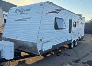 2009 KZ 26′ bumper pull travel trailer – rear kitchen, single slide out, well maintained, stored inside