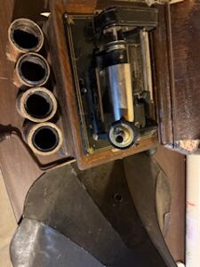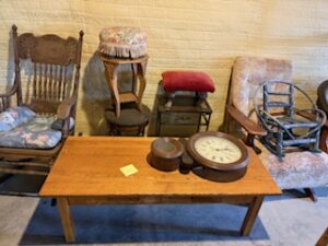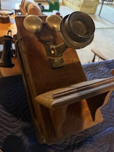 Vintage primative goat cart wagon * Edison Model D flat top cylinder player w/30″ horn * Northern Electric oak wall phone (complete) *(2) vintage wicker doll/baby buggies * American Boiler ornate mini cast iron woodstove * Vintage round & rectangular * oak dinning tables * oak medicine cabinet w/ mirror * Howard Miller 31- day wall clock * pressback rocking chairs * Bobsled chasis * steamer trunks * wooden dinning chairs * galvanized funnels & oilers * 10 gal. stoneware crock