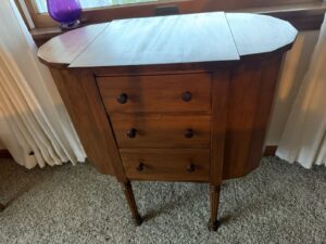 Oak 4-section Barrister style stacking bookcase * La-Z-Boy floral pattern sofa * Blue stripped rocker/recliner * Oak 3-piece bedroom set *  Sm. Bookcases * Sentry ValueGuard 1250 16×18” fireproof safe * Martha Washington style sewing cabinet * 76” Slim line curio cabinet * Nice oak armoir * Oak serpentine front dresser * Cast iron/wooden park bench * Sm. Oak dinette set * Pair arts & crafts style oak drawered end tables * Sm. Oak parlor table * Slimline jewelry cabinet * Howard Miller Career award clock * Maytag wringer washer * Pots, pans & general household merchandise