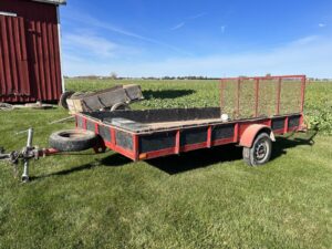 J.D. 12- leg hyd. lift chisel plow (A-1 Condition) * ARPS 6’ 3 pt. back blade * Oliver 6’ 3 pt. sickle mower * 6×12’ Single–axle utility trailer w/ramp * 4×6 Wooden utility trailer * 5’ Pull-type roll over drag/scraper * Dearborn 3 pt. 2-bottom plow w/coulters * Mauer built 3 pt. V-ditcher * 3pt. Boom lift * Stihl # 011AV 16” gas chainsaw * Huskee 7 h.p. chipper/shredder w/2.5 BU.cap. * Walk-behind mower * Agri-Fab yard trailer * 42” pull-type leaf catcher, thatcher & roller * Earthquake front tine rototiller * Qty. gas cans, & related necessities