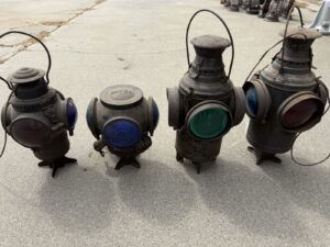 * Tin, Cast Iron & Wooden Signage inc. Glass Marble Reflective & Cast Iron Whistle Signs * (50) R.R. Lanterns & Lights inc. Switchmans, Conductors & Caboose * R. R. Locks & Tooling * R. R. Ephemera