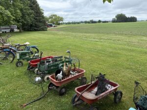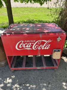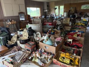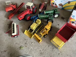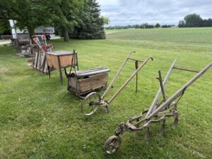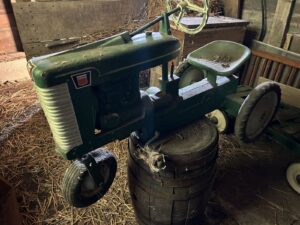 Eska Oliver themed pedal tractor * Ringer-washer * DeLava No. 15 cream separator * Massey Ferguson Formula 1 Ski-Wizz * Ski-Wizz 344 snow machine * Wood Oliver grass seeder boxes * Coca-Cola chest cooler * Crocs * 1950’s tank bikes * quantity of farm primitives & antiques