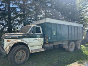 1964 Chev. C/60 Tandem Dump Truck, 427 gas, 5×2 trans, 18” Thumb box.