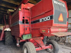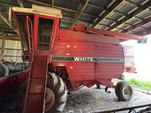 White Harvest Boss 8700 Combine, diesel @2269 hours showing * White 706N Corn head, nice shape * White 15’ Kwik Cut Platform head * Oliver 525 Combine